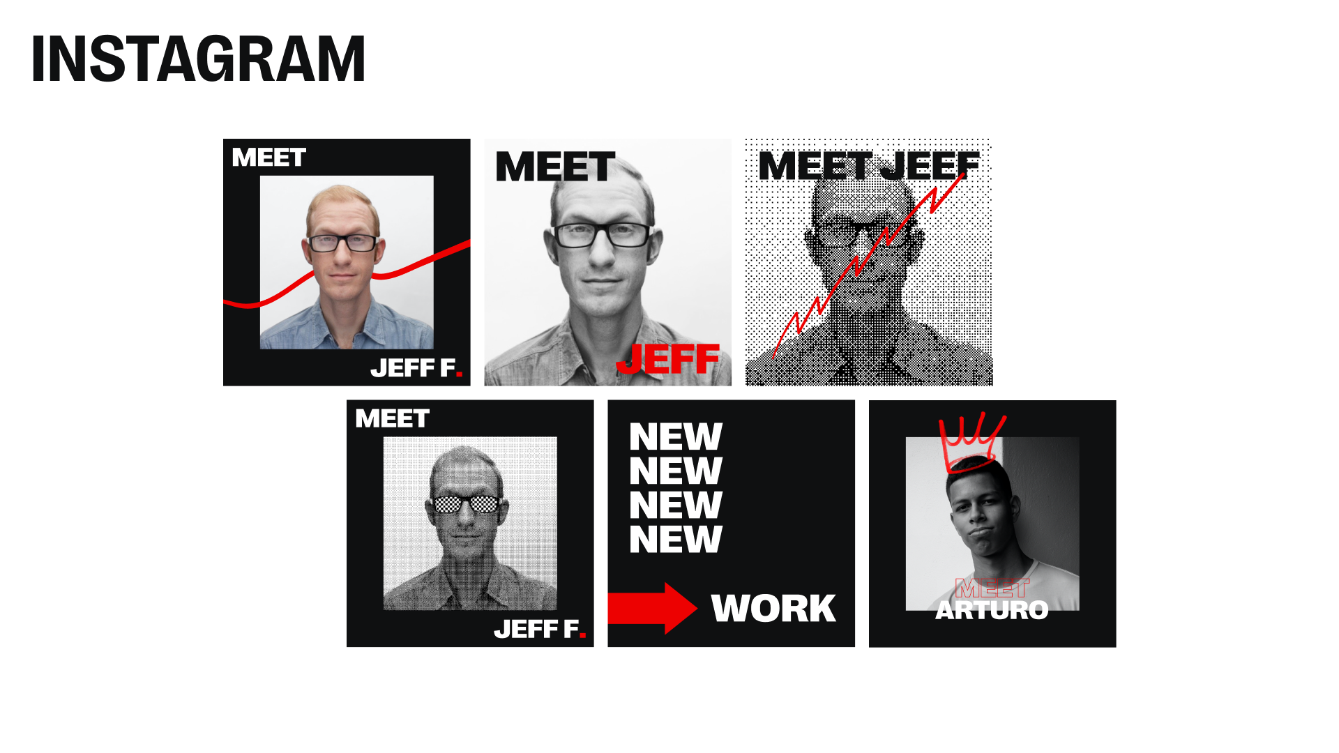 Visual explorations of your brand's look and feel. Colors, imagery styles, multiple directions to react to.