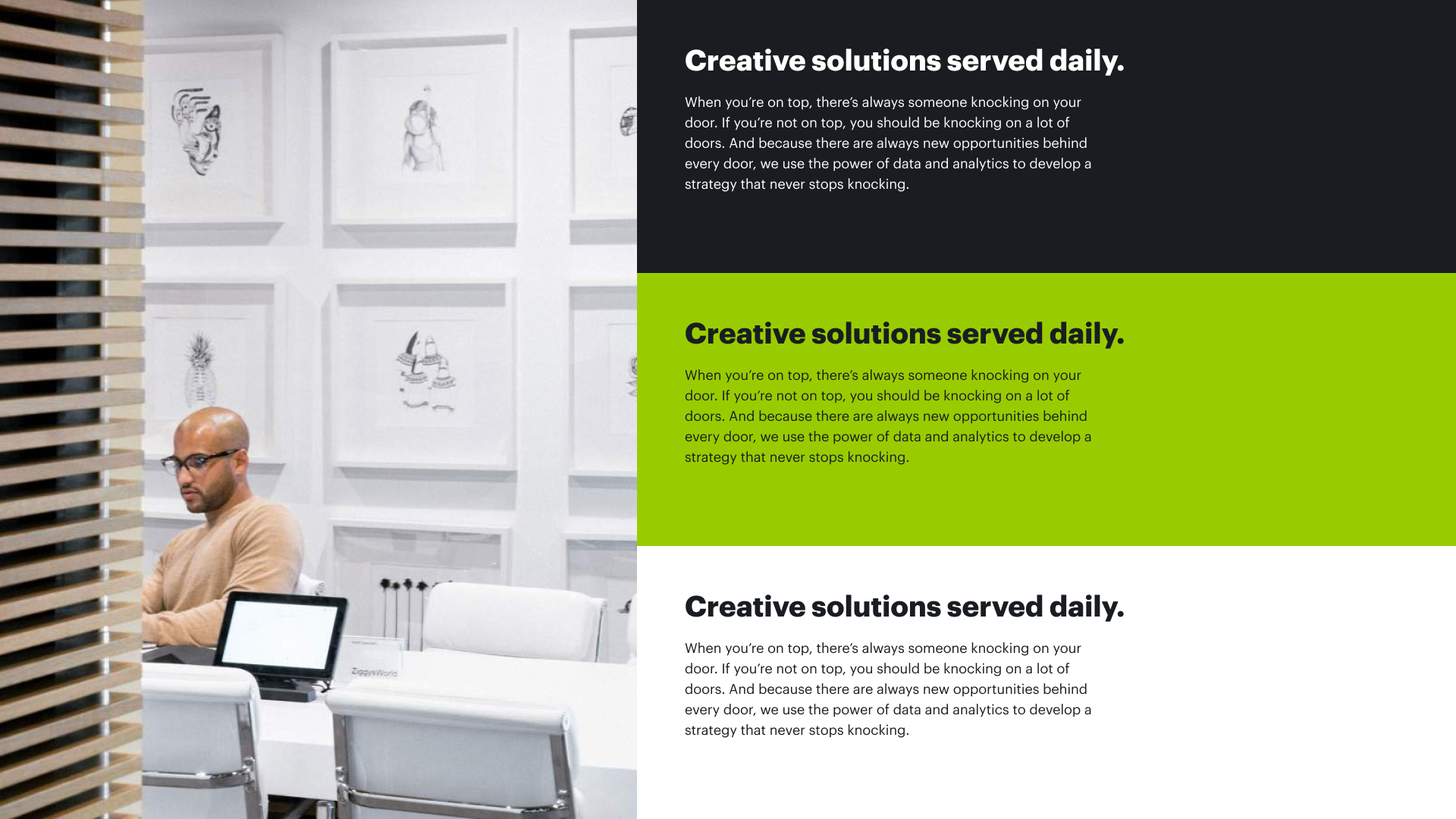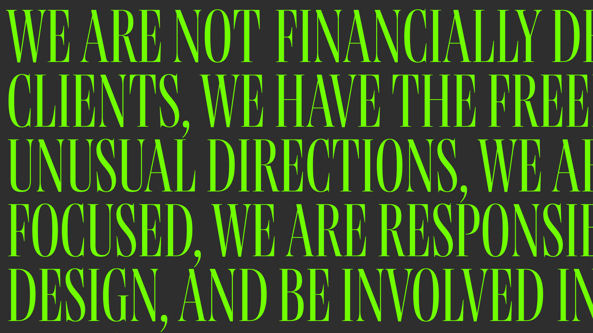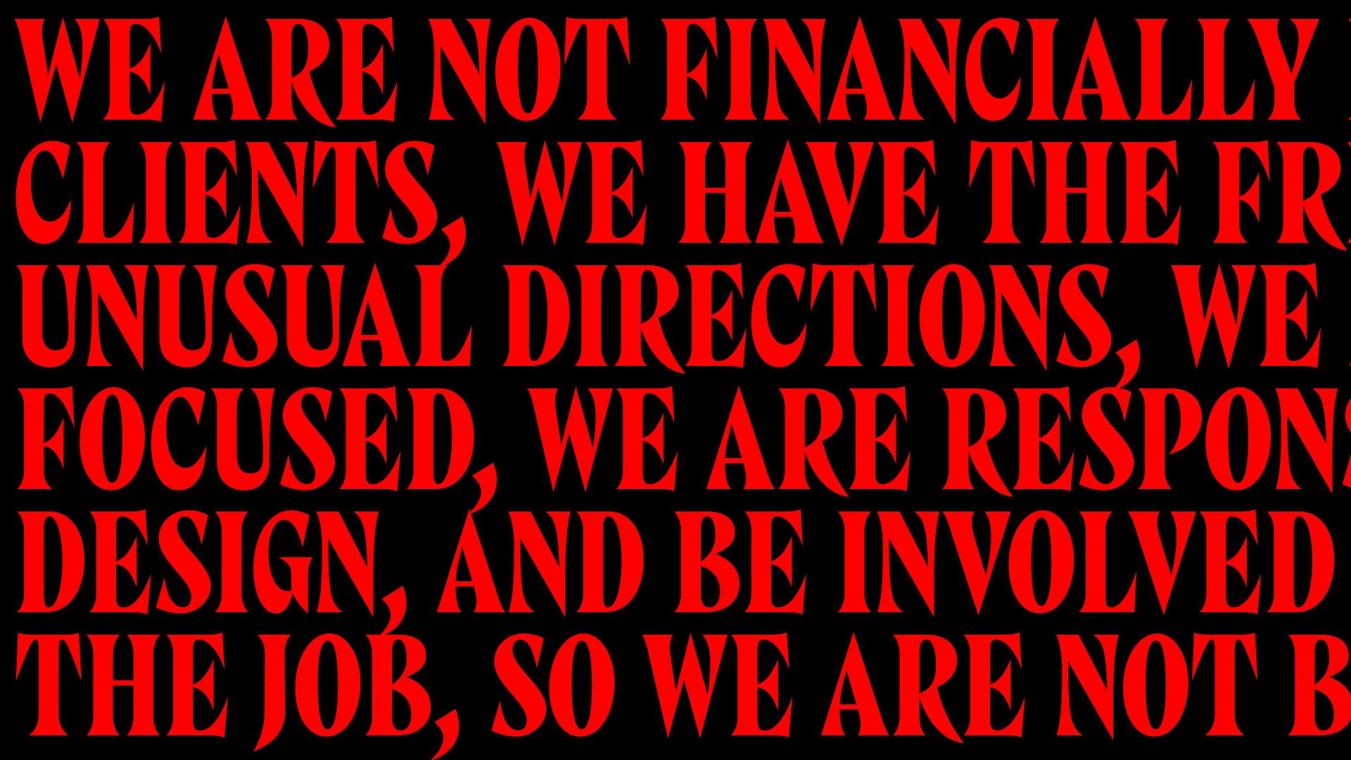 Here's a taste of the kind of work we do. Playful, experimental, and always pushing in interesting directions.